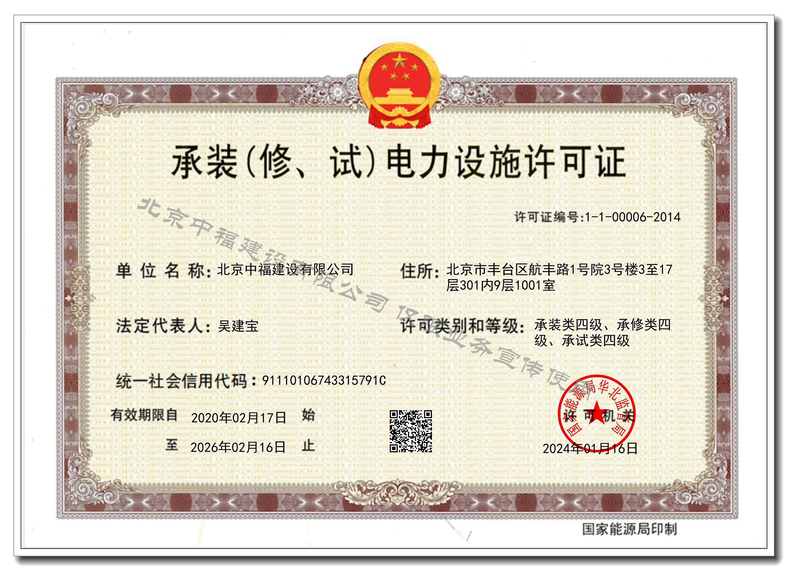 承裝(修、試)電力設施許可證
